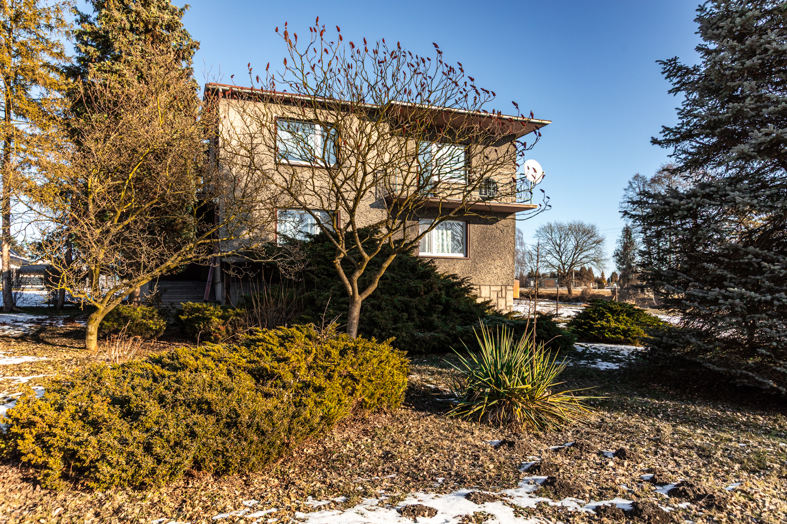 Dojazd do domu początkowo utwardzony kostką brukową, w dalszej części trawa.
