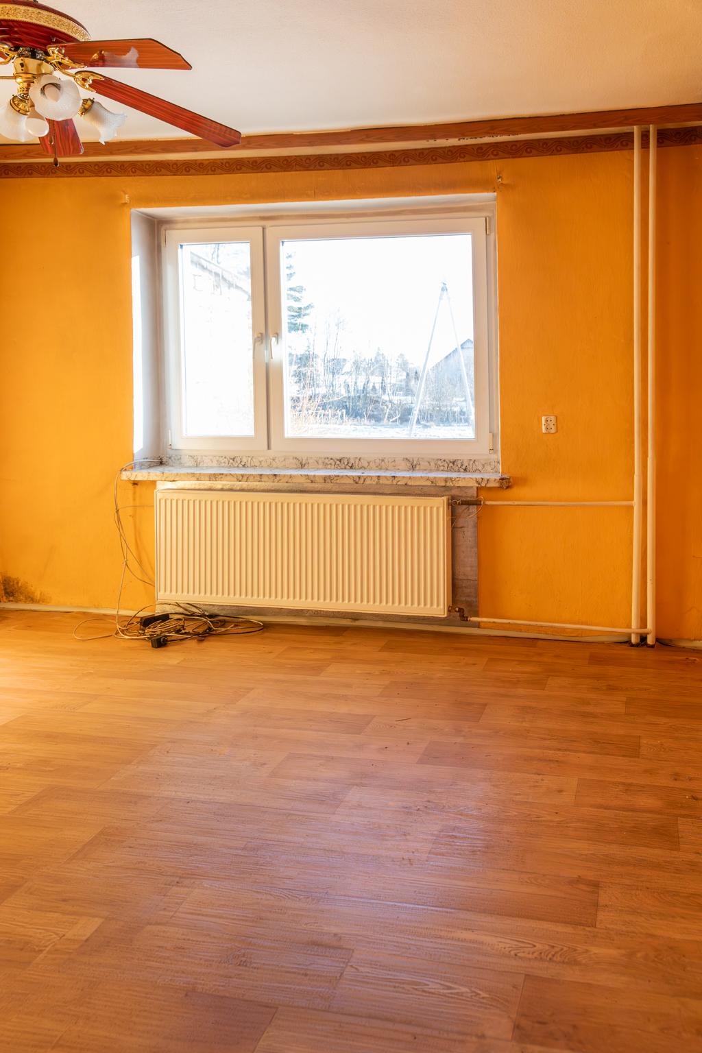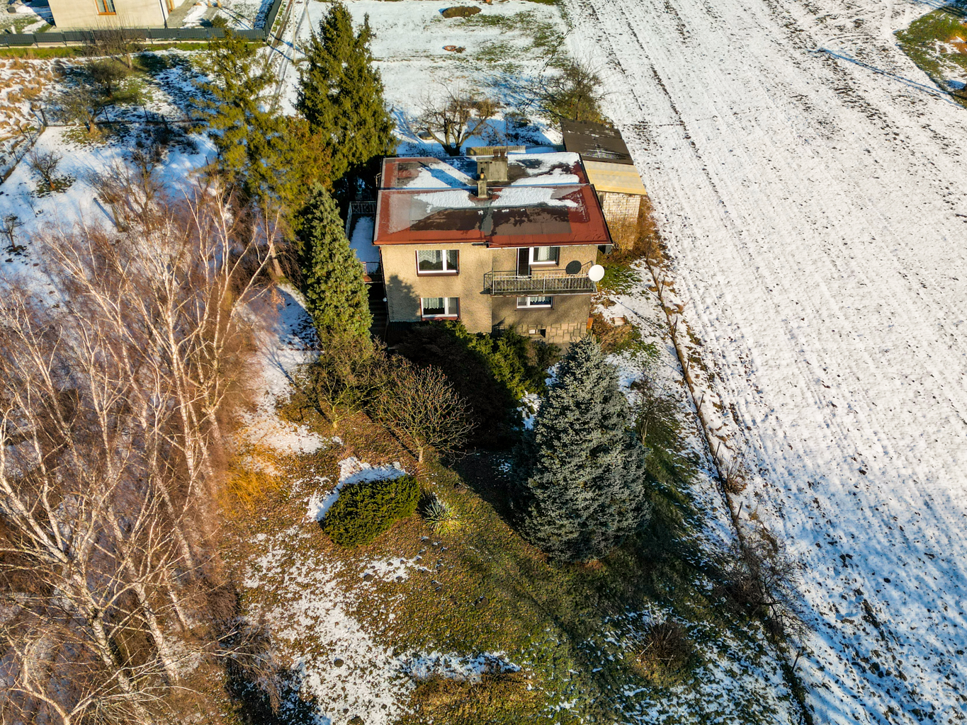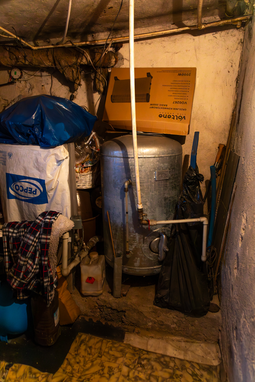 – Gaz doprowadzony do skrzynki znajdującej się na froncie budynku, bez rozprowadzenia samej instalacji w środku. Dom nie ogrzewany od roku, wcześniej ogrzewany piecem na węgiel dwufunkcyjnym działającym ale nie spełniających aktualnych norm. Dodatkowo w sezonie letnim do ogrzania wody wykorzystywany jest bojler dwupłaszczyznowy o poj. 400 l, który wymaga naprawy.